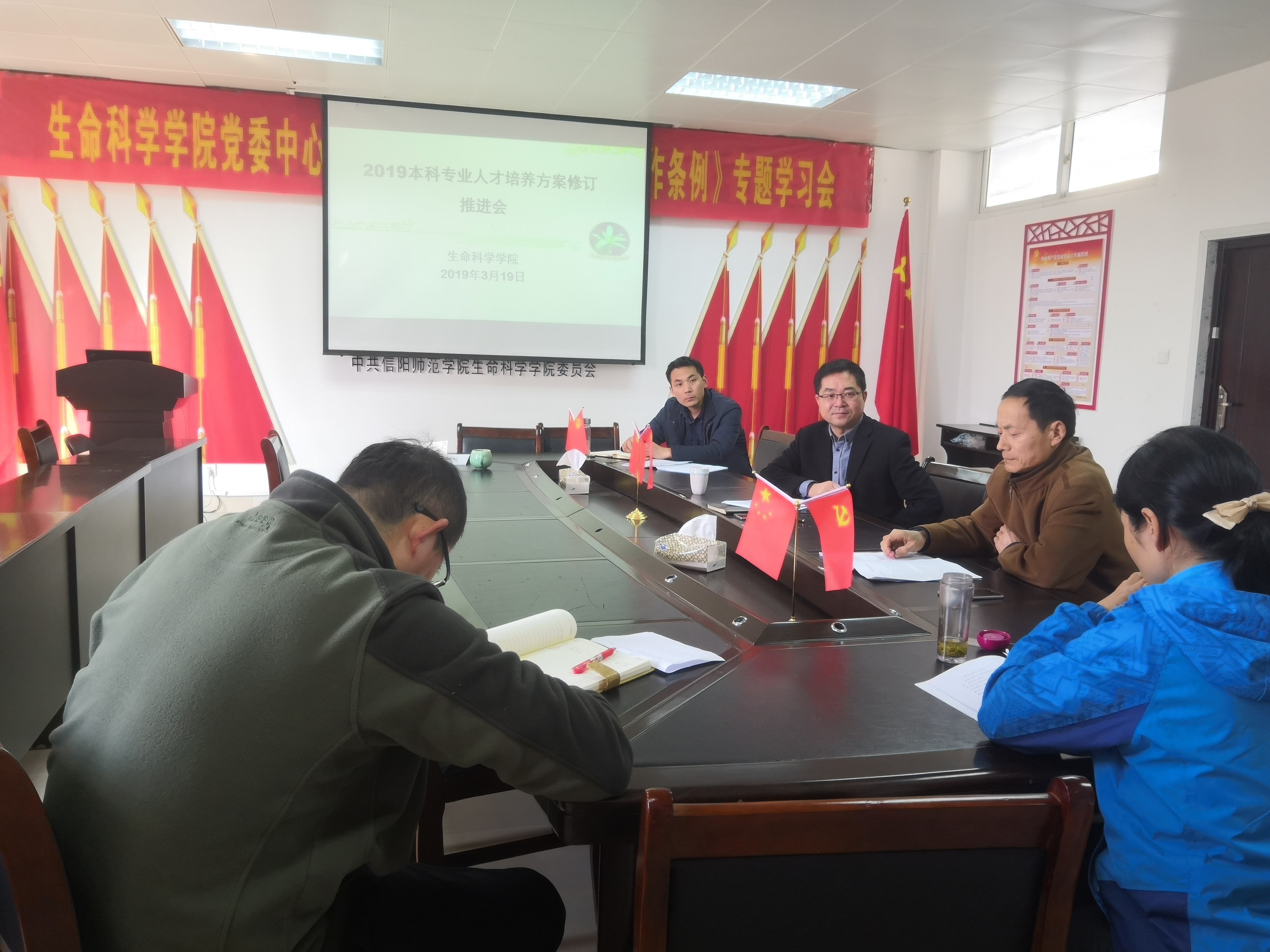 3月19日上午,2019版本科专业人才培养方案修订工作推进会第二次会议在生物楼412会议室召开了,经理袁红雨、教学副经理宋新强、各专业负责人以及教学秘书参加会议。会议由宋新强副经理主持。